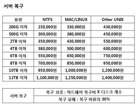 ★서버복구 비용안내